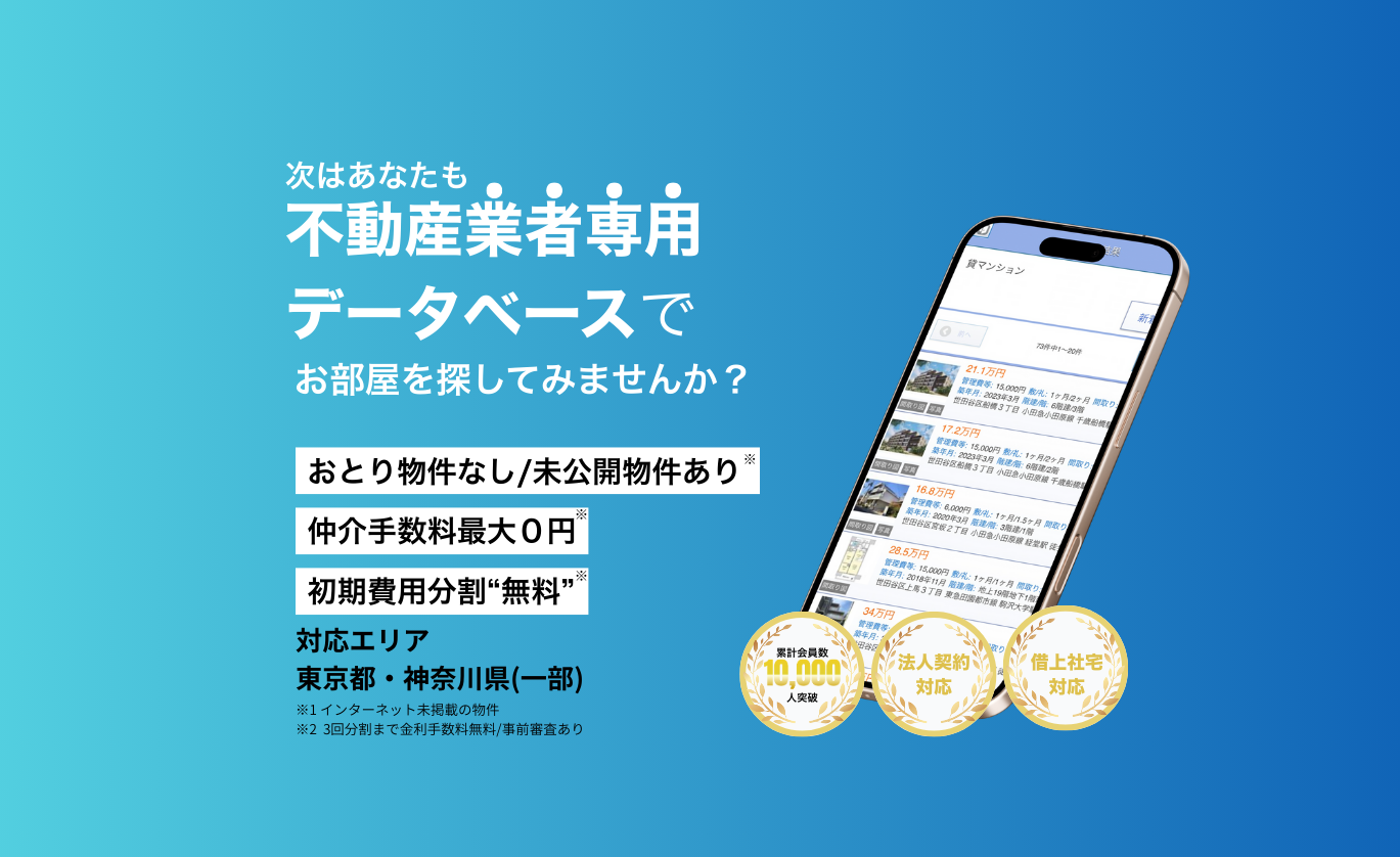 専用データベースを駆使しているので、東京都内トップクラスの物件数。未公開物件も探せます。